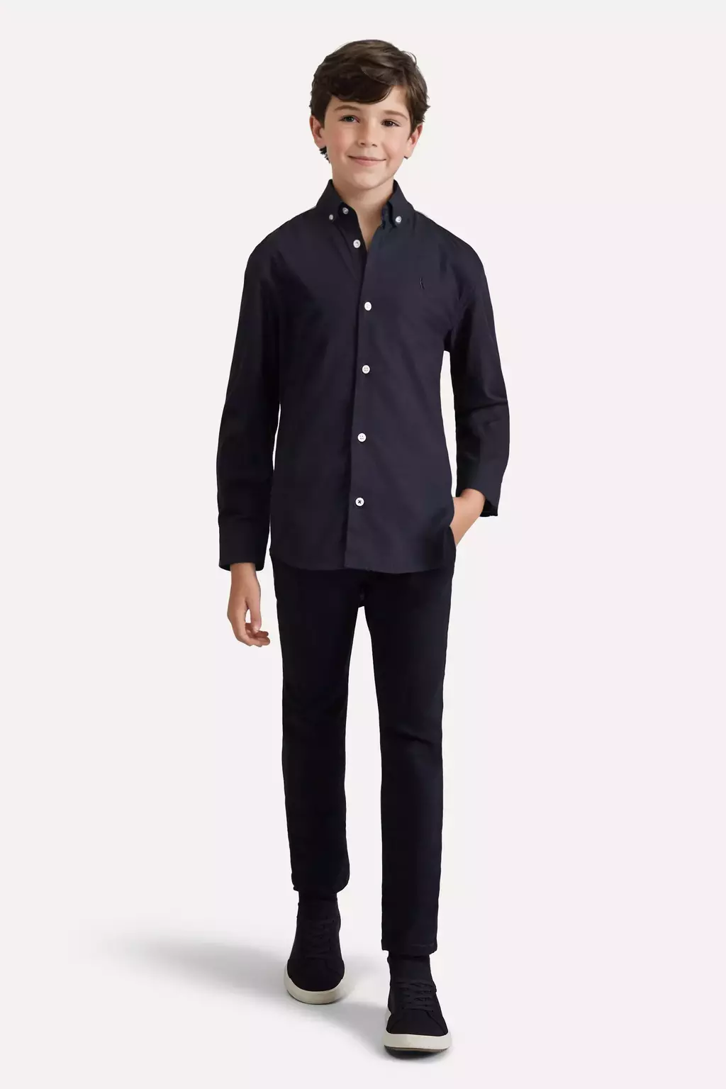 O jeans preto que acompanha o ritmo (e o estilo) dos pequenos. A Calça Jeans Mini Indigo Black é aquela peça curinga que resolve o look em qualquer ocasião, com o toque moderno da modelagem skinny e o conforto que a criançada precisa para se movimentar o dia inteiro. Com lavagem escura e caimento ajustado, ela transita fácil entre o visual casual e o arrumado, seja para a escola, o almoço em família ou um passeio no fim de semana. O toque macio, a elasticidade na medida e os acabamentos exclusivos Reserva garantem o equilíbrio entre praticidade, estilo e personalidade. Ao escolher esta peça, você ainda viabiliza cinco pratos de comida através do nosso Programa 1P5P. Produzida eticamente no Brasil.